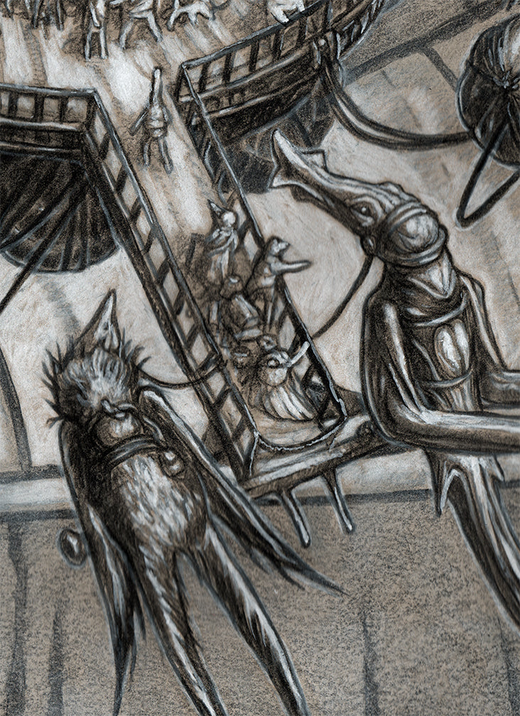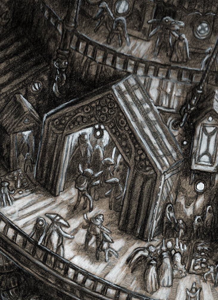 This is the featured environmental art for Air Shops that was produced for my first book, The Grand Bazaar of Ethra VanDalia.
