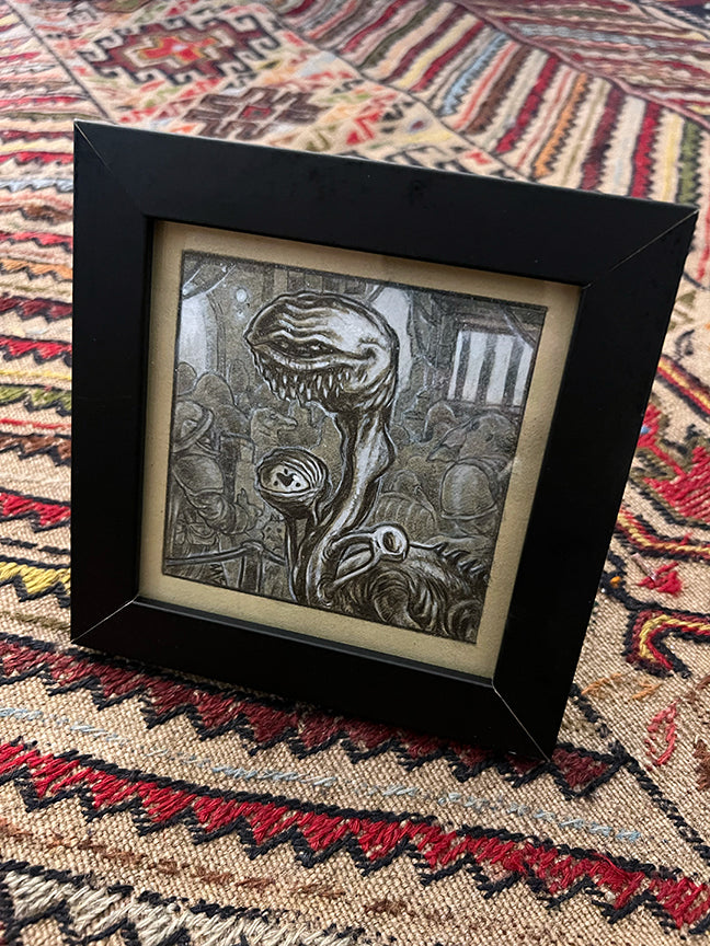 Ut-Louw'Vat - 5 x 5 - colored pencil, acrylic paint, and ink on toned BFK Rives paper
