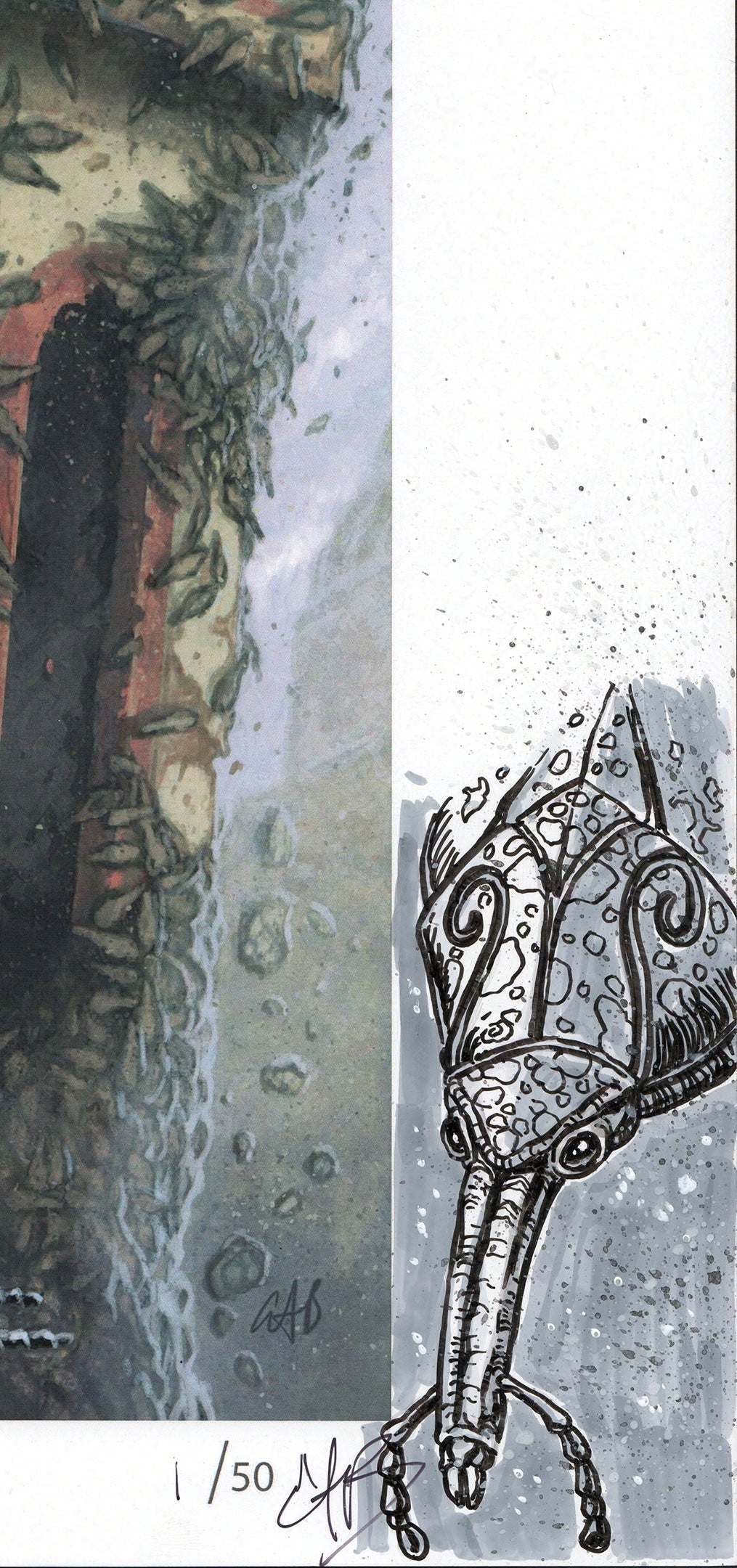 This is the #1 signed and numbered Magic the Gathering print from my edition of the image. The edition of 50 has sold out except for this first print in the edition. This print also features an original drawing along the right border. Marker, ink, and acrylic paint were used to create the drawing. The print is 12" x 18" and will be shipped rolled.