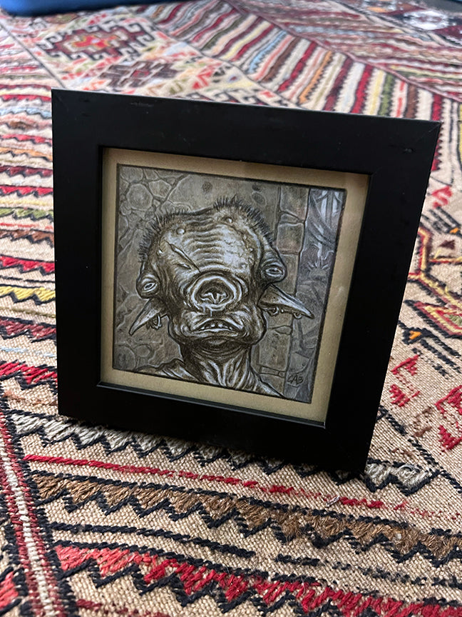 Brondibock - 5 x 5 - colored pencil, acrylic paint, and ink on toned BFK Rives paper