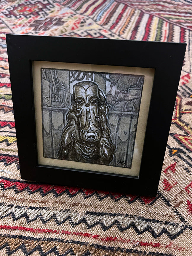 Quab - 5 x 5 - colored pencil, acrylic paint, and ink on toned BFK Rives paper