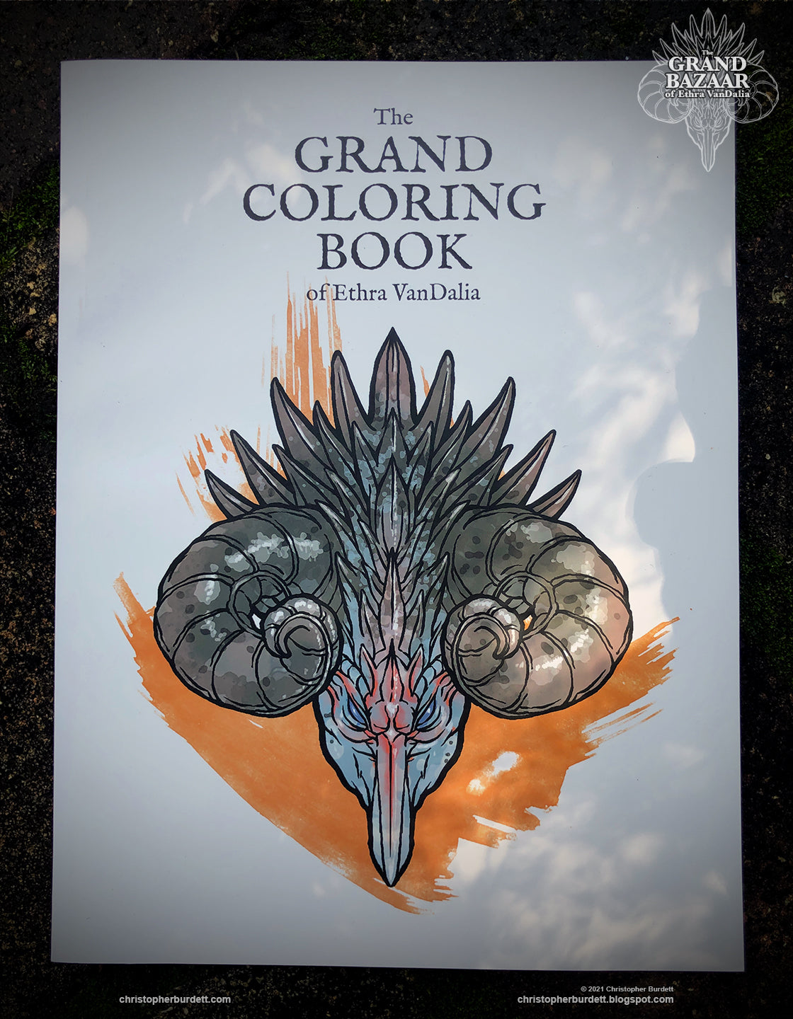 • Do you like to color monsters and the world they live in? Then you will want to get a copy of the Grand Coloring Book of Ethra VanDalia. The coloring book features all of the main art from the hardcover as line art ready to be colored. Each page is backed with solid black to allow markers or similar wet media to be used without the need to worry about bleeding.