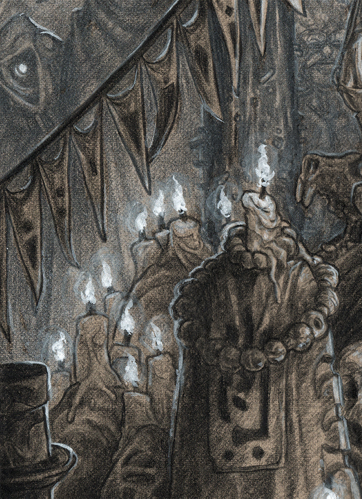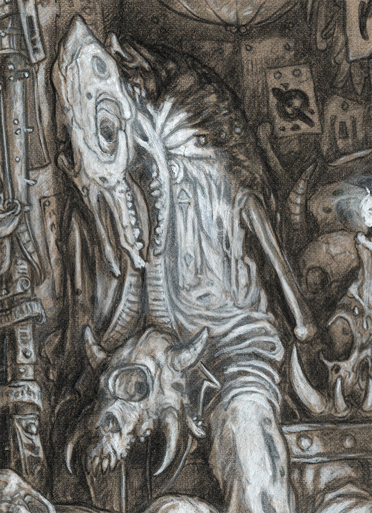 The Seated Dead - 16 x 20 - colored pencil, acrylic paint, and ink on toned BFK Rives paper